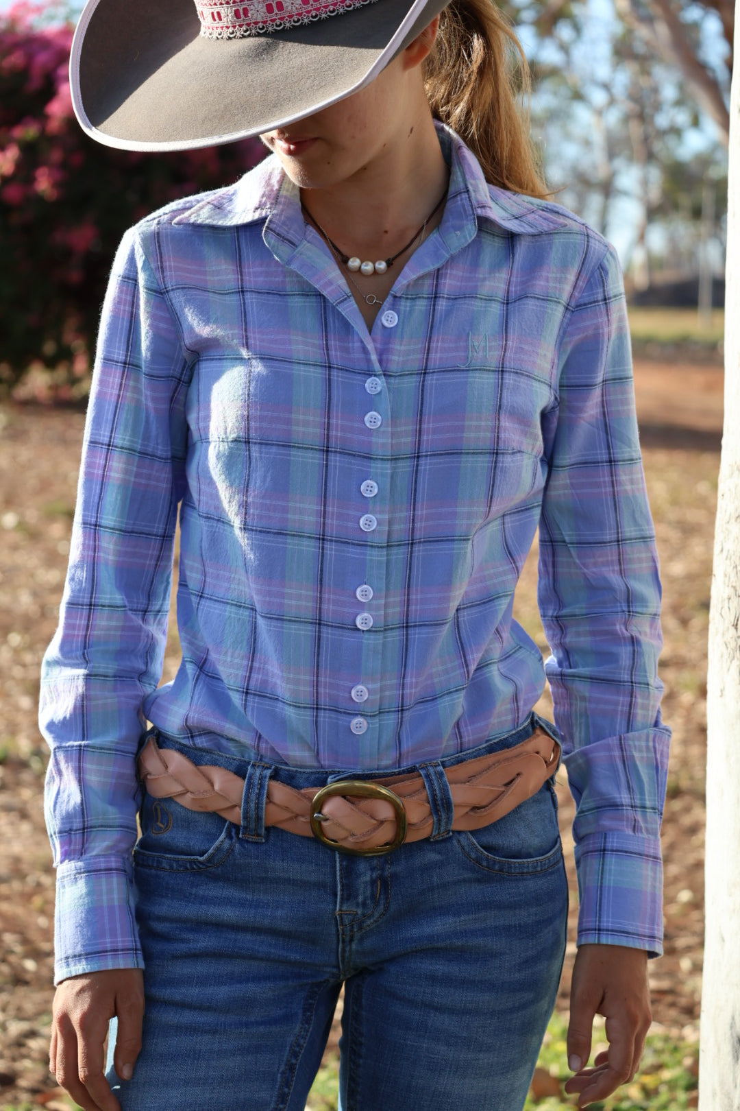 Belle Long Sleeve Ladies Cotton Shirt - Purple