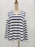 Effortlessly stylish and endlessly versatile, our Stripe V-Neck Tee is your new everyday essential. Crafted from soft 100% cotton, this mediumweight and breathable top is perfect for everything from casual errands to relaxed evenings out. The flattering V-neckline and timeless stripe design make it a natural match with your favorite jeans or a skirt — dress it up or down with ease.